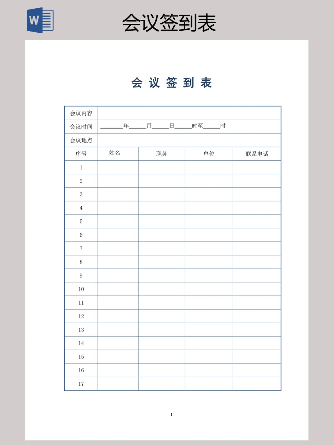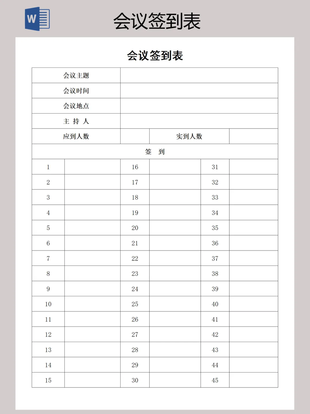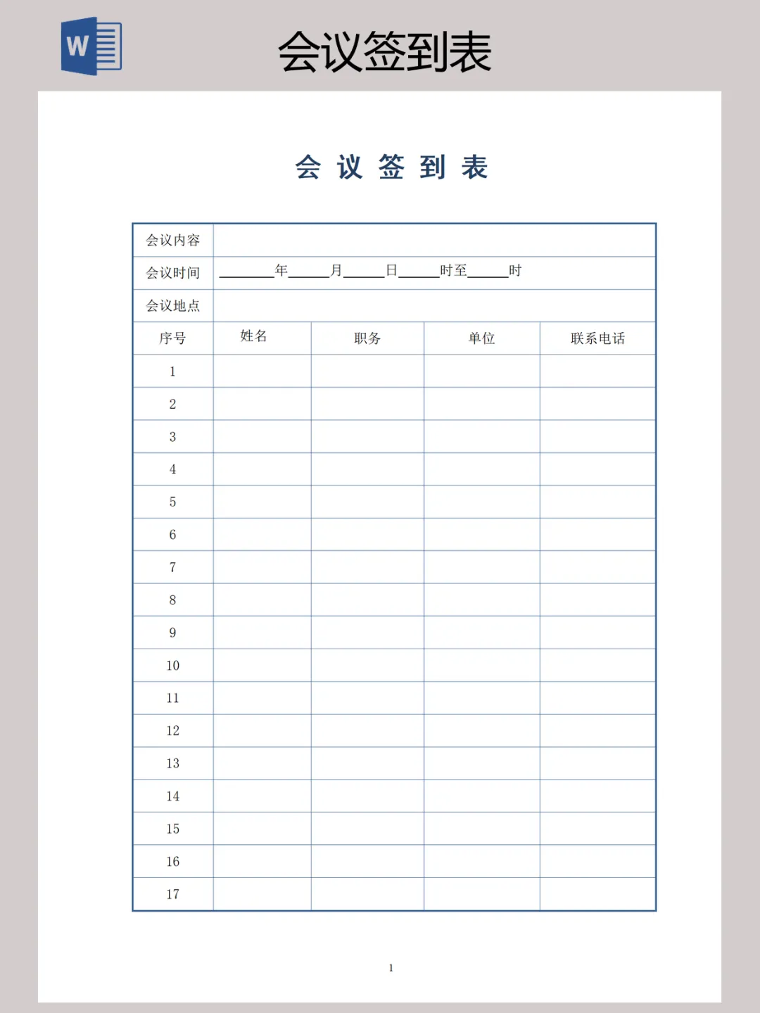 本文内容分享【会议签到表】