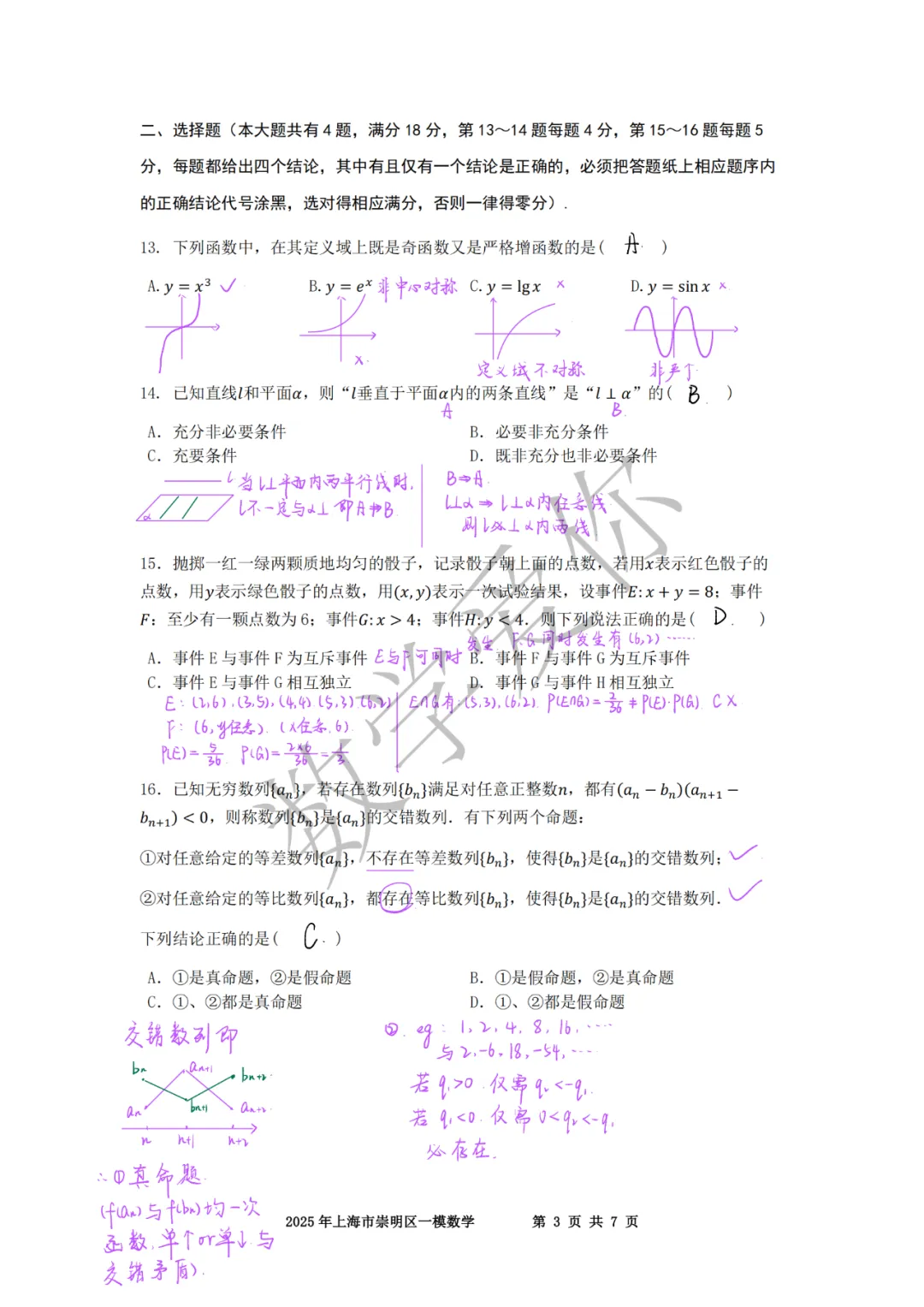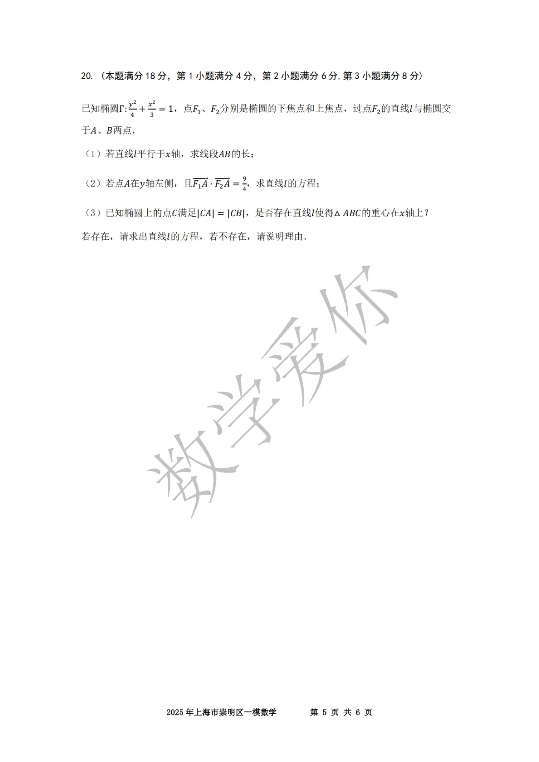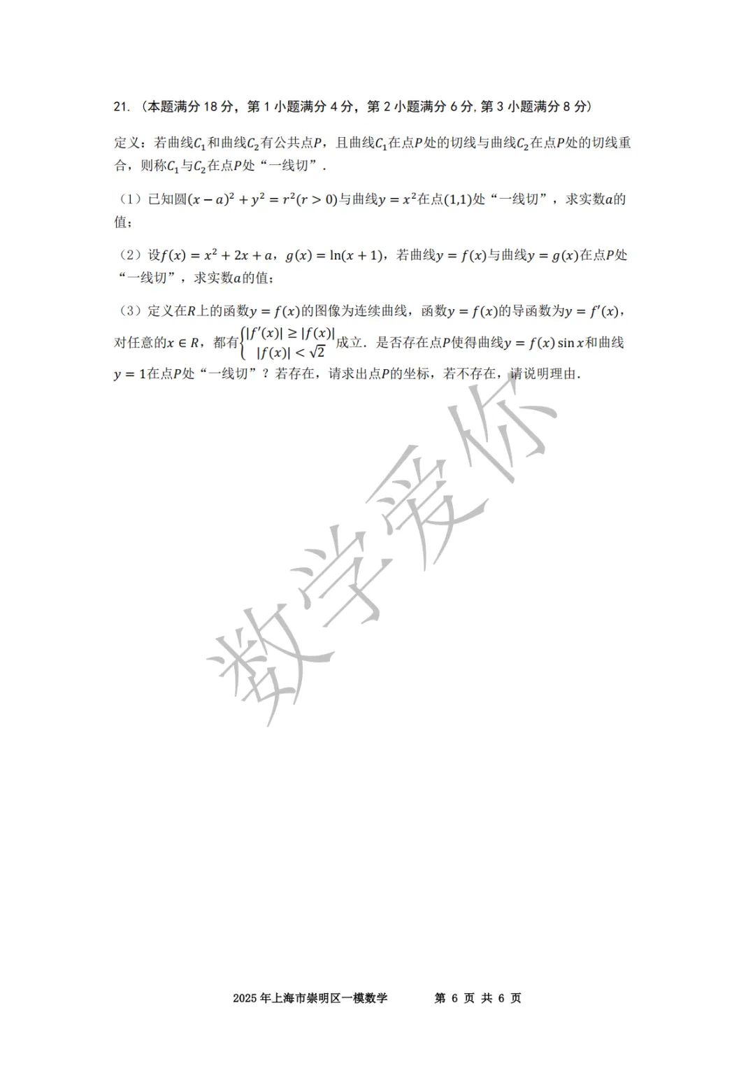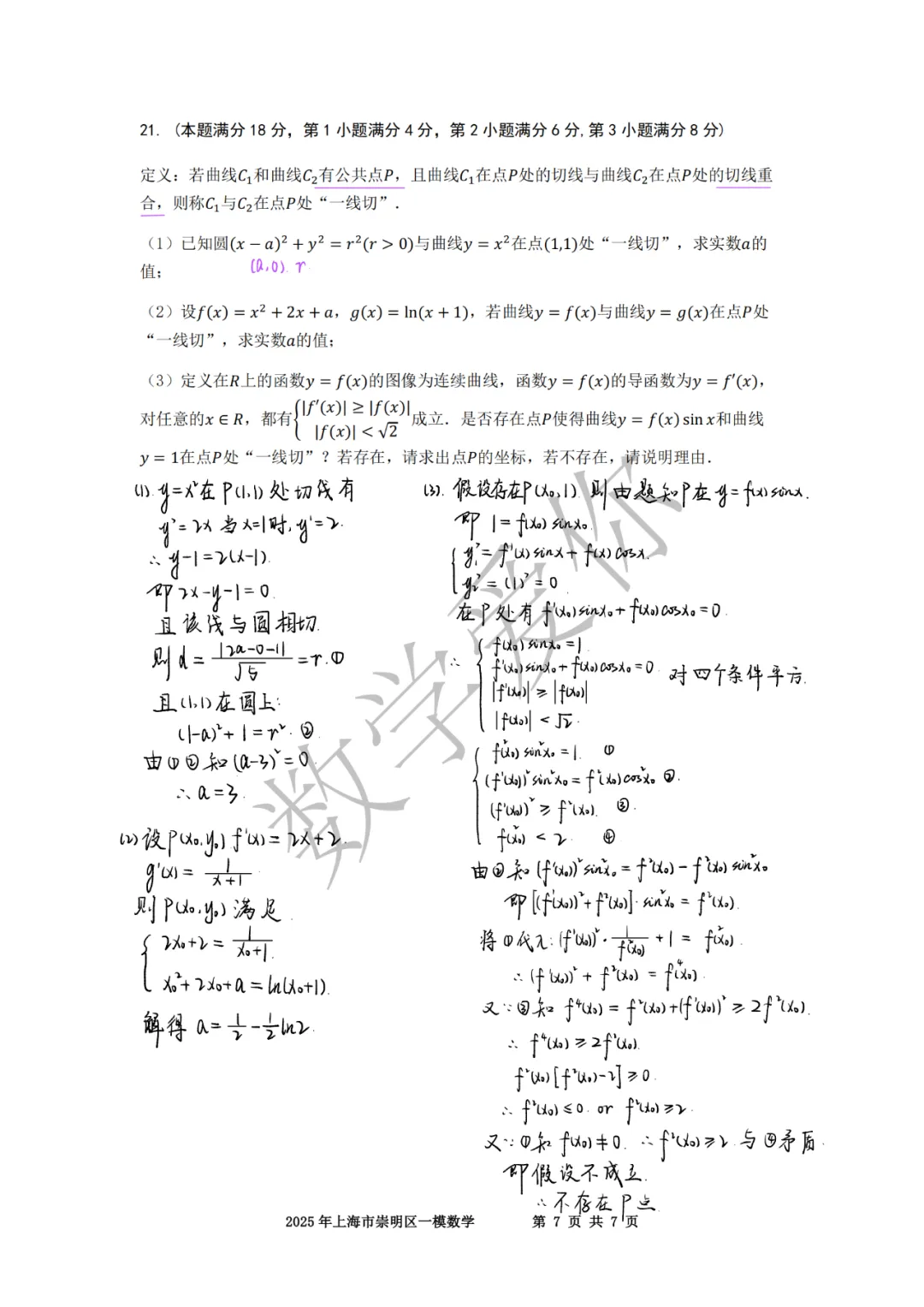 >2025崇明高三一模数学(word+手写解析)