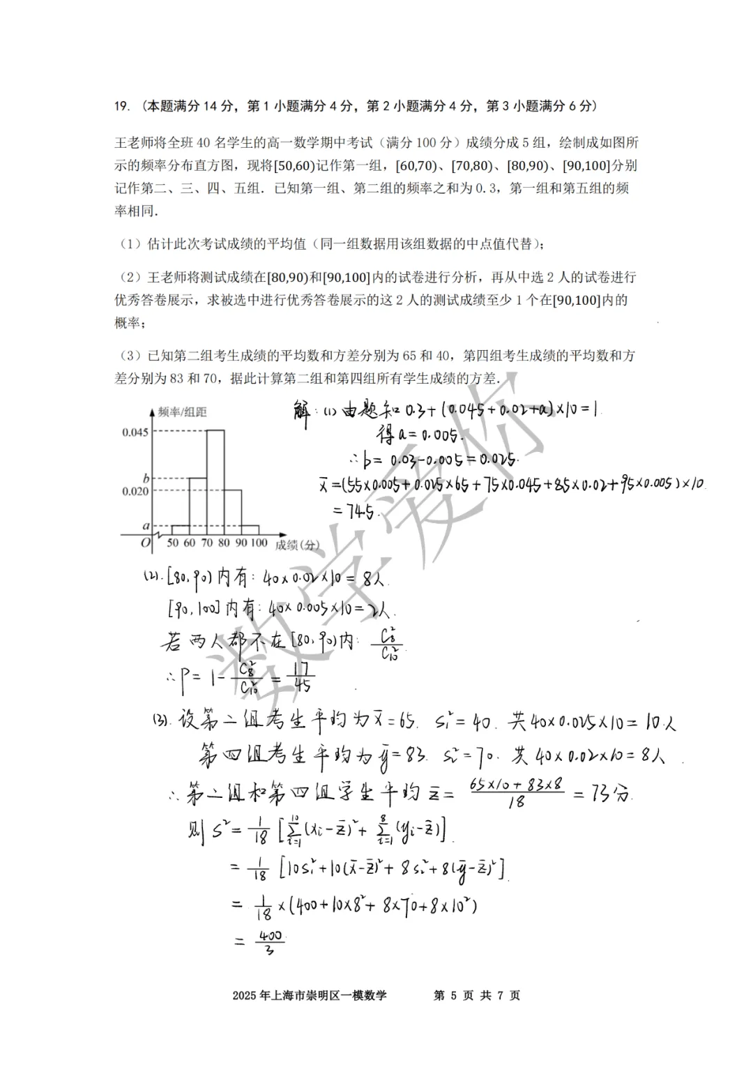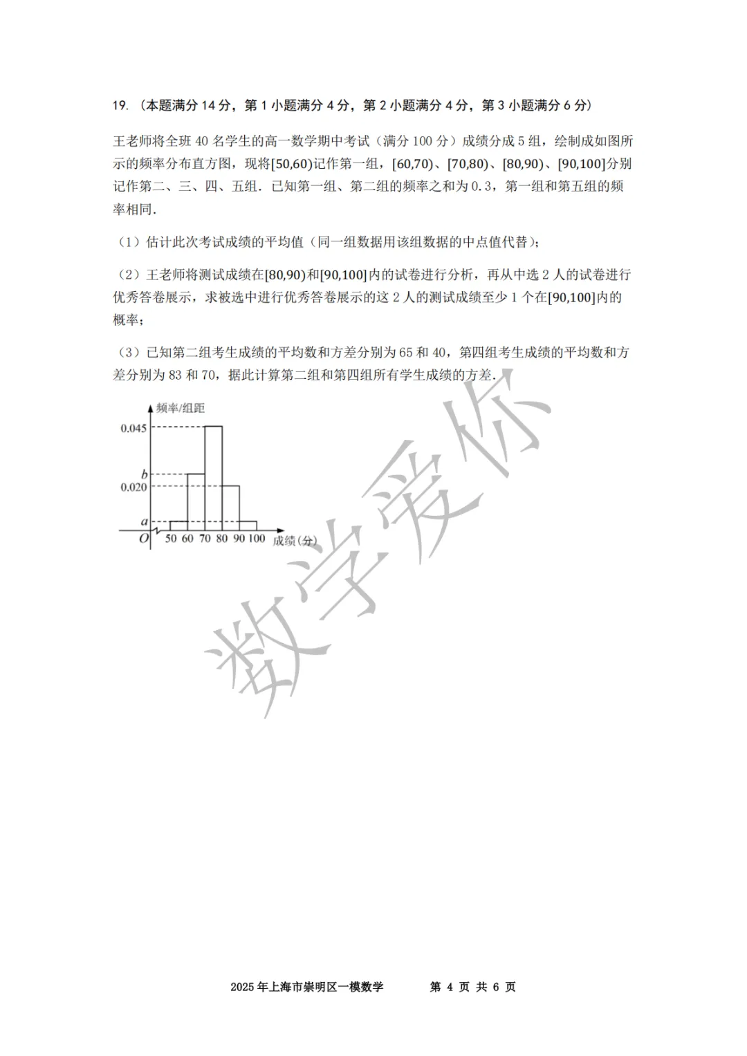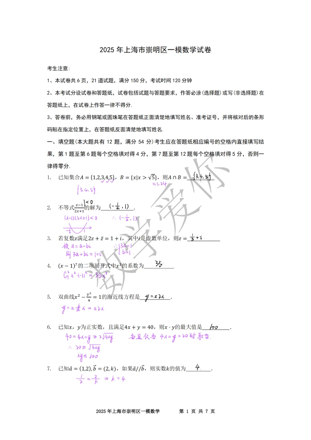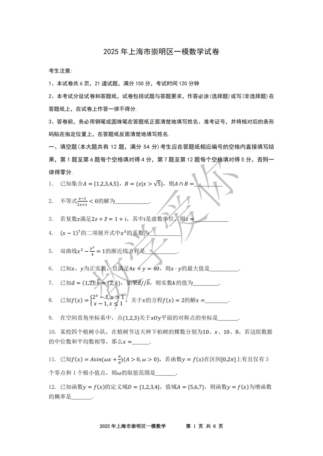 >2025崇明高三一模数学(word+手写解析)