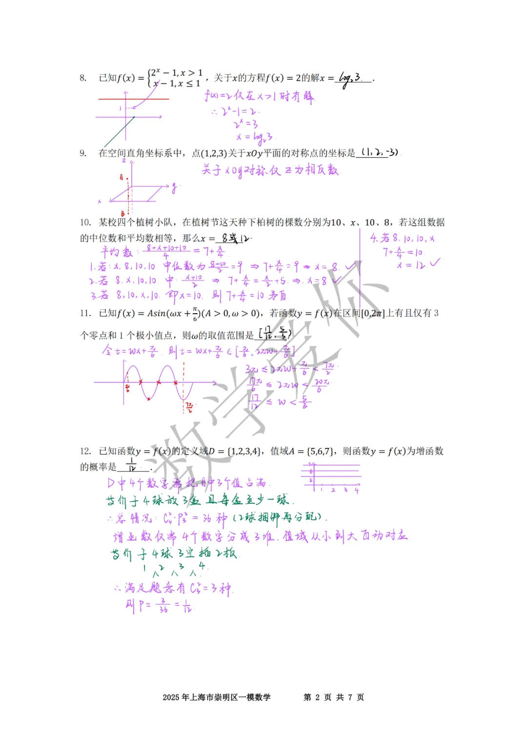 2025崇明高三一模数学(word+手写解析)
