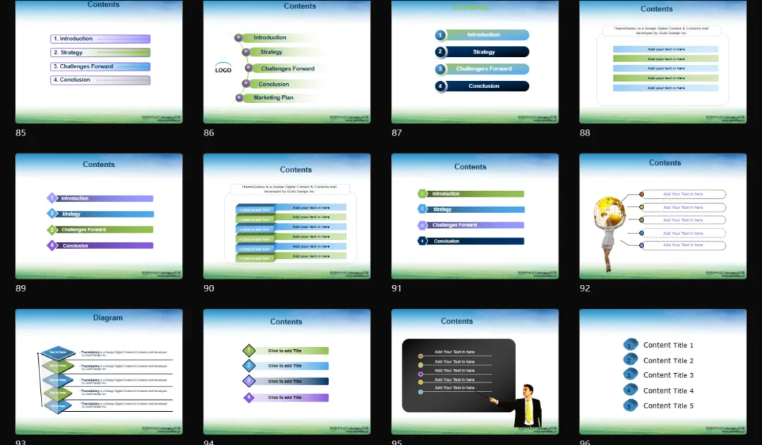 最为「经典」的,当然是来自于ThemeGallery和PresentationLoad等国外专业PPT设计机构的图表和插图。尽管绝大部分使用的人并不知道其来源,但专业从事PPT设计的人一眼就看出来了。