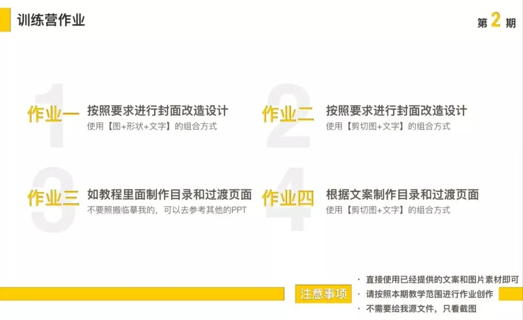 同时我也会在每期的教程末尾放上PPT作业,供大家详细了解作业要求。
