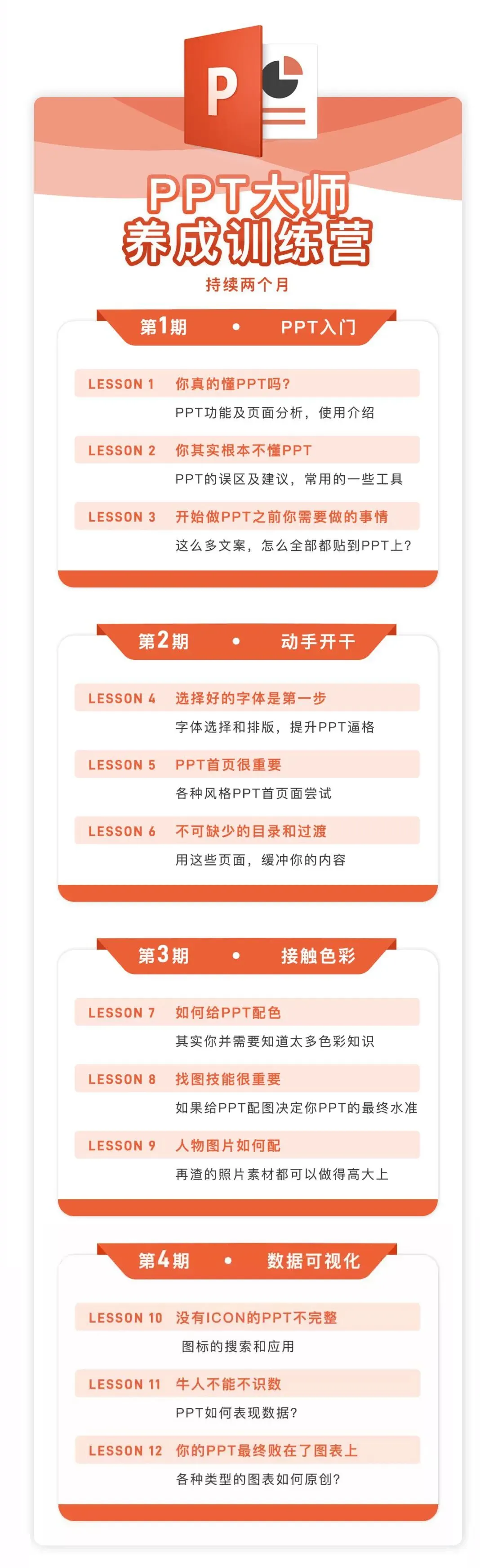 下面是整个PPT训练营的课程设置