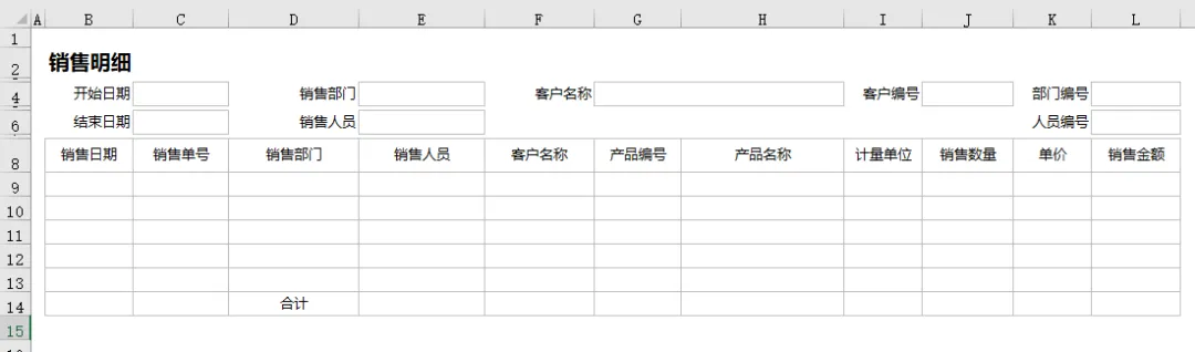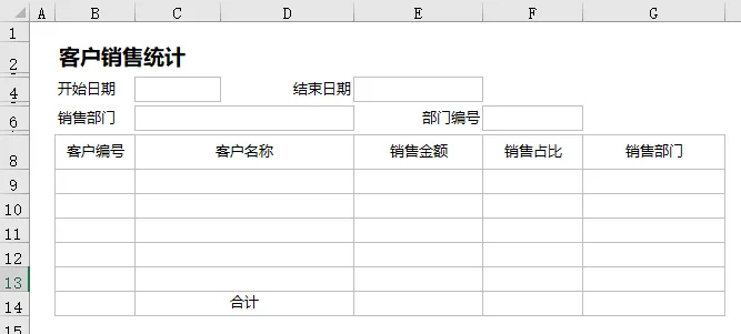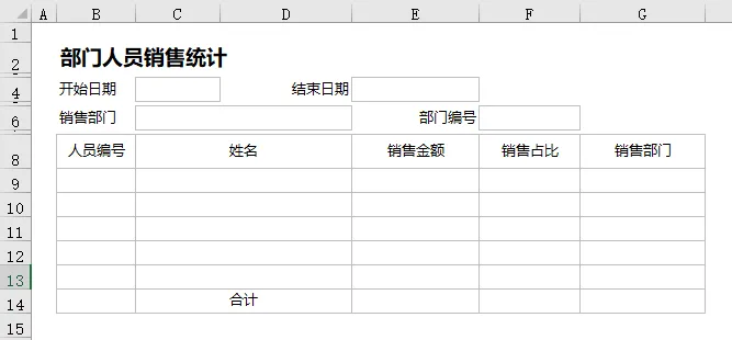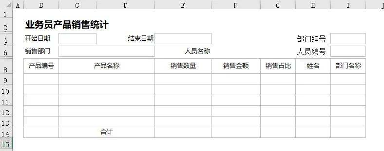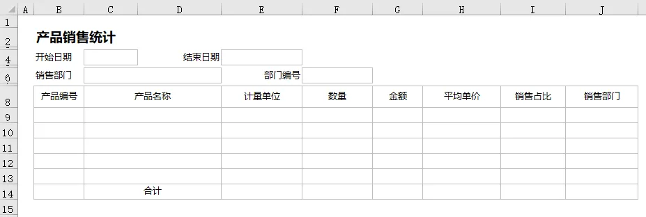 按上面的要求,我们会用到五个统计报表,我们先用Excel画好模板样式如下图。