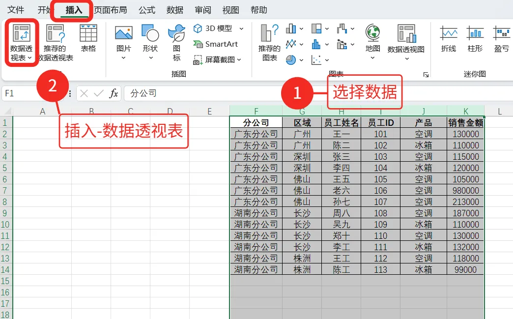 1、数据源为连续矩形区域:无单独空行、空列,空行 / 列会导致透视表识别数据终止,遗漏后续内容。