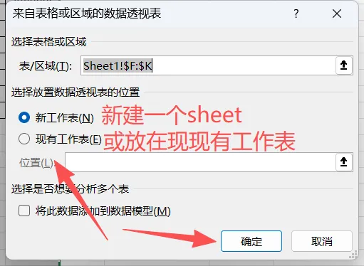 ③选择透视表存放的位置