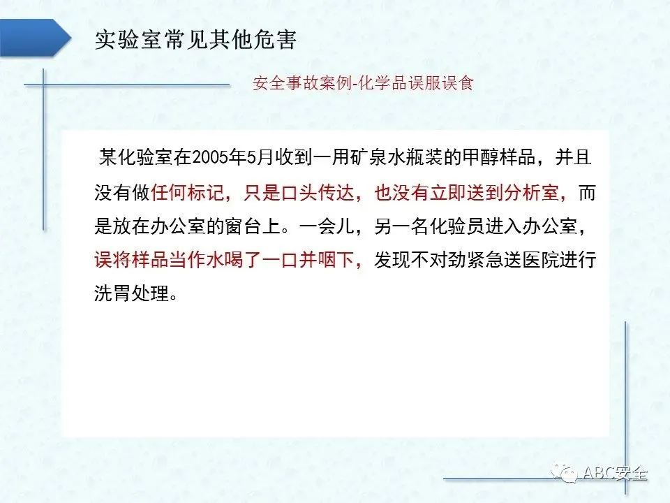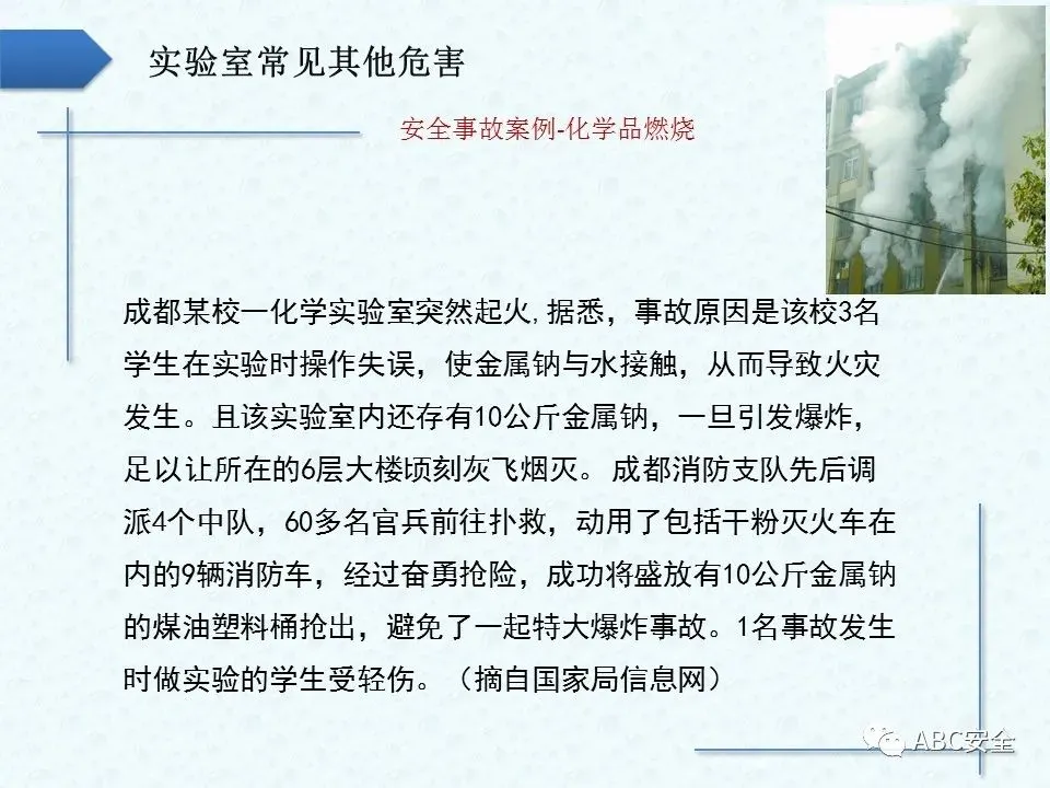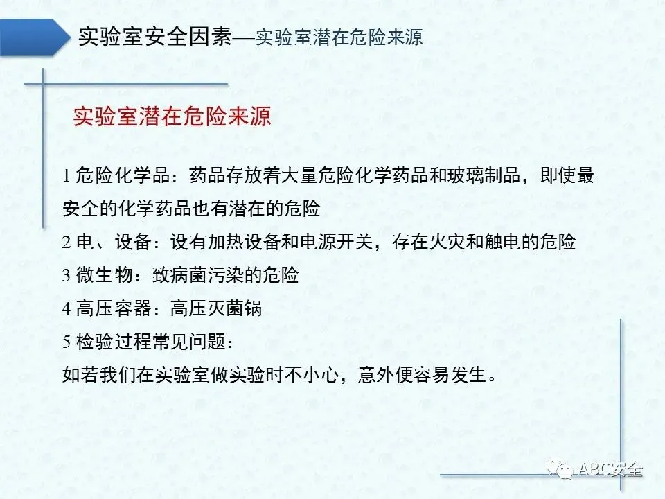 在化学实验室中,经常与毒性很强、有腐蚀性、易燃烧和具有爆炸性的化学药品直接接触,常常使用易碎的玻璃和瓷质器皿以及在煤气、水、电等高温电热设备的环境下进行着紧张而细致的工作,因此,必须十分重视安全工作。