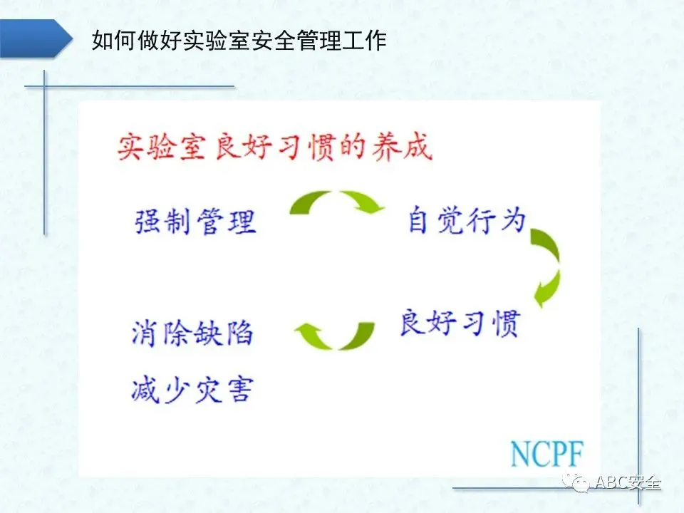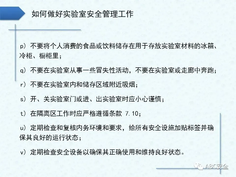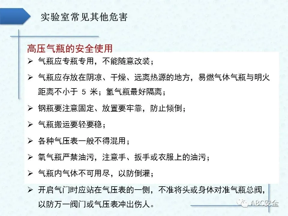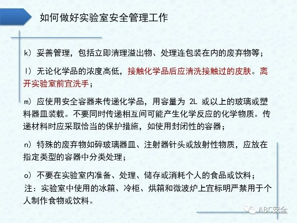 1.进入实验室开始工作前应了解煤气总阀门、水阀门及电闸所在处。离开实验室时,一定要将室内检查一遍,应将水、电、煤气的开关关好,门窗锁好。