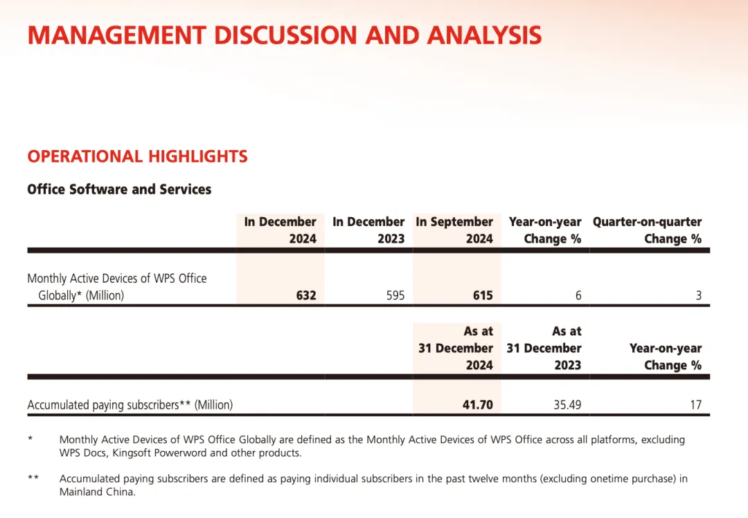 • WPS Office(Kingsoft):报告显示,全球月活跃设备数为 6.32 亿(2024 年 12 月)。
