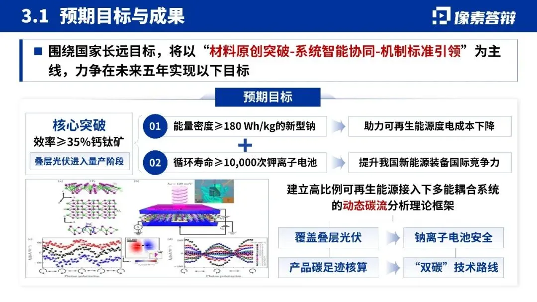 国际权威专家评价其成果兼具 “科学前沿性、技术突破性和产业应用价值”。未来五年目标明确,聚焦材料原创突破与系统智能协同,计划推动效率≥35% 的钙钛矿叠层光伏量产,开发能量密度≥180 Wh/kg 的钠离子电池,进一步提升我国新能源装备的国际竞争力。