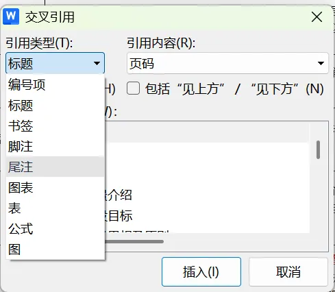 (1)交叉引用,插入页码