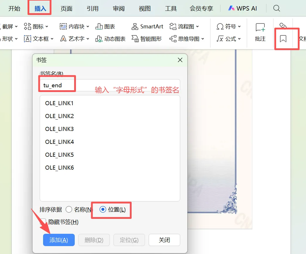 (2)插入书签