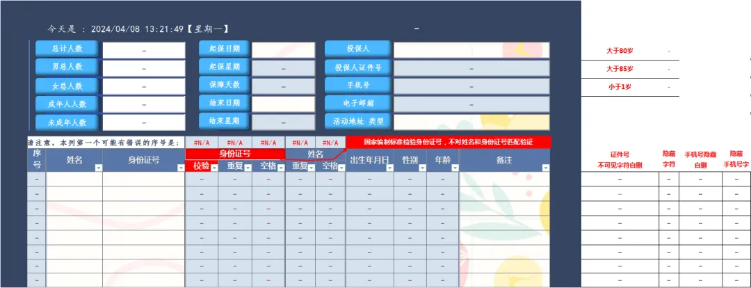 在数据处理和分析中,IF 函数是一个常用的函数,特别是在Excel或类似的电子表格软件中。当涉及到大量数据处理,如几百人的投保信息时,使用 IF 函数可以帮助我们自动化地执行某些条件检查,例如检查身份证号是否有误或是否有重复。