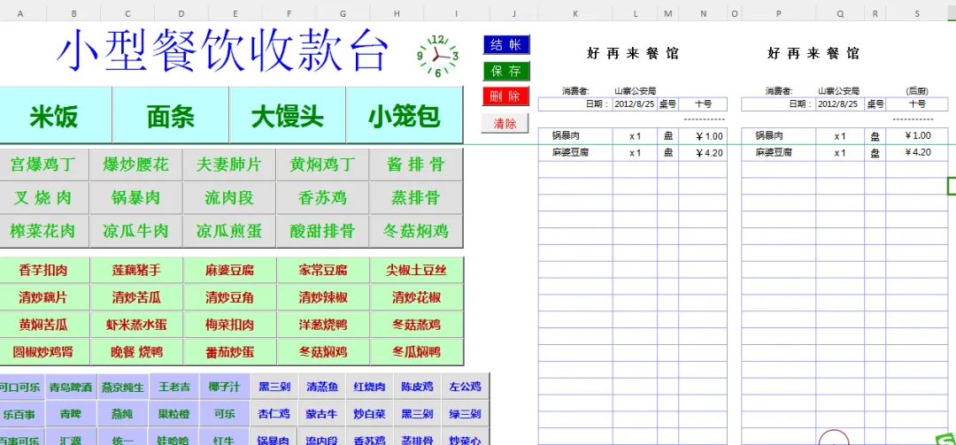 本编以前在一家国企工作,excel函数、数据库是工作中必会的技术,建立模型,要怎样的结果,以前编写的某餐饮业是收银台及统计的: