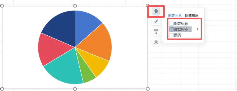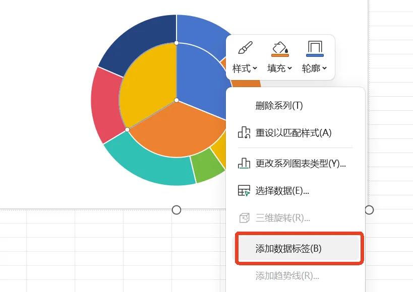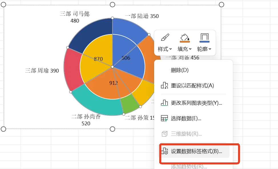 点击外部大扇形,右击扇形,选择添加数据标签,设置完成扇形如下: