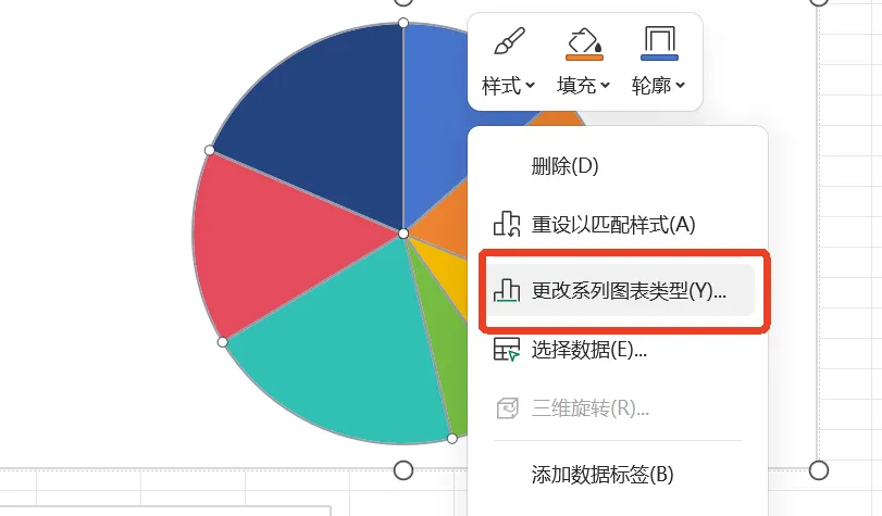 6、右击图表,点击更改系列