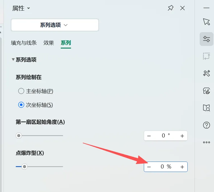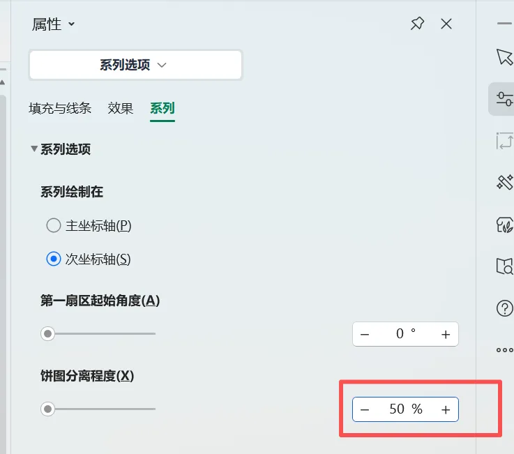9、右侧饼图分离程度选择50%,敲回车