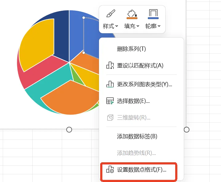10、右击小扇形,选择设置数据点格式