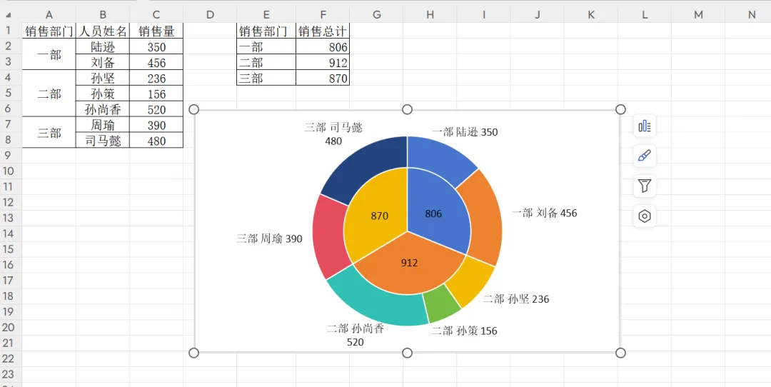 Excel双层饼图制作方法