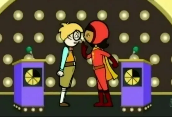 比如一个“邪恶天才”小男孩Tobey,他操控Giant attacking robots 对城市正常运行进行破坏, Word Girl前去阻止,其中的一个环节就是比拼词汇,有一道题是“轮流说一个enormous的近义词”,从他们的口中会说出“big,large,huge, giant, massive”, 小男孩说了一个“unsmall ”,"unsmall" 是词吗?大人很容易判断,小孩就不一定了,因为un是英语中一个常见词缀,孩子可能会误以为unsmall是一个词,其实不是。