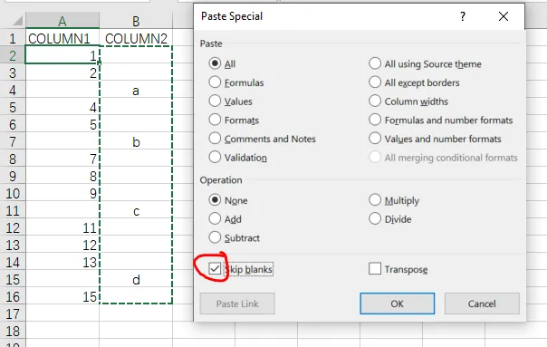 3.勾选跳过空值