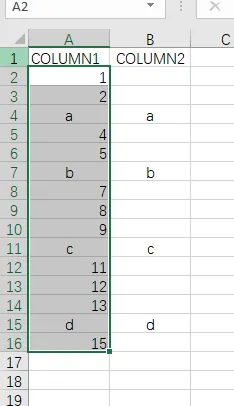 1.选中column2 的数据,复制