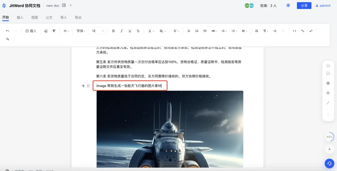 我在文档里输入:/image:生成一个航天飞行器的图片