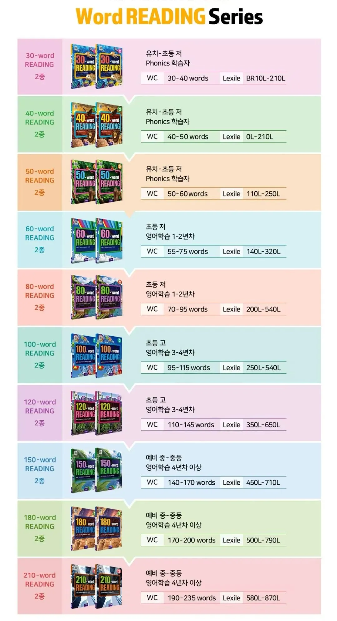 超绝的英文原版分级词汇阅读系列Word Reading全套资源,分为30 40 50 60 80 100 120 150 180 210词汇阅读 共10个等级,每个等级2本,阅读段落根据难易程度长度适中,非常适合需要加强词汇部分的孩子。