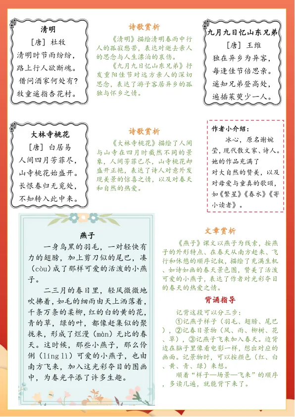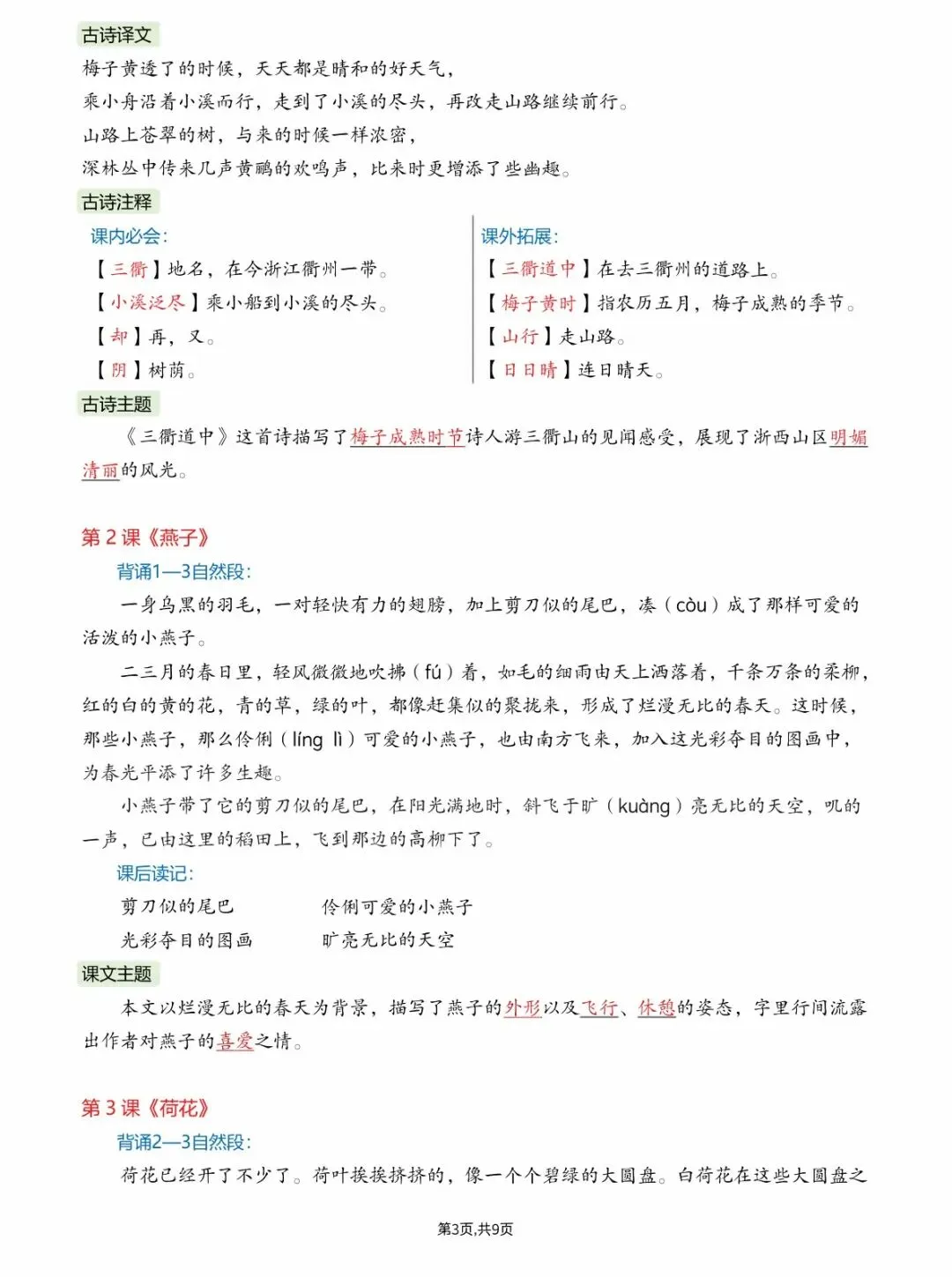 >26春三年级语文寒假特色作业(word可修改)含字帖,必背内容