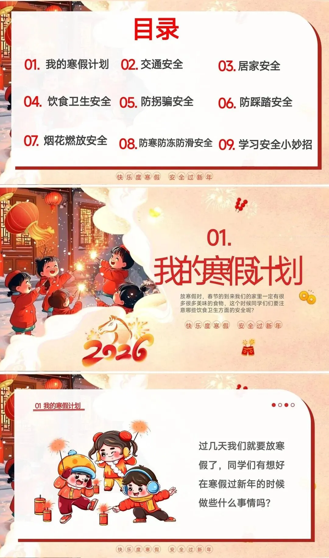 中小学生寒假安全教育主题班会ppt 寒假来临 安全先行 39页内容可编辑