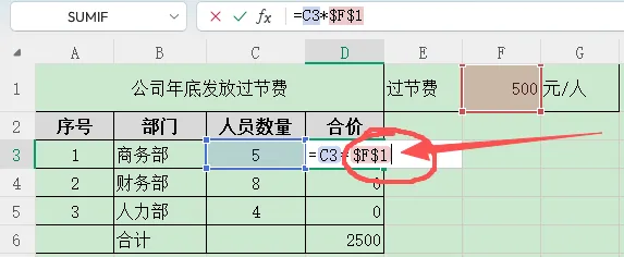 我们需要 固定引用“过节费单价”所在的F1单元格。
