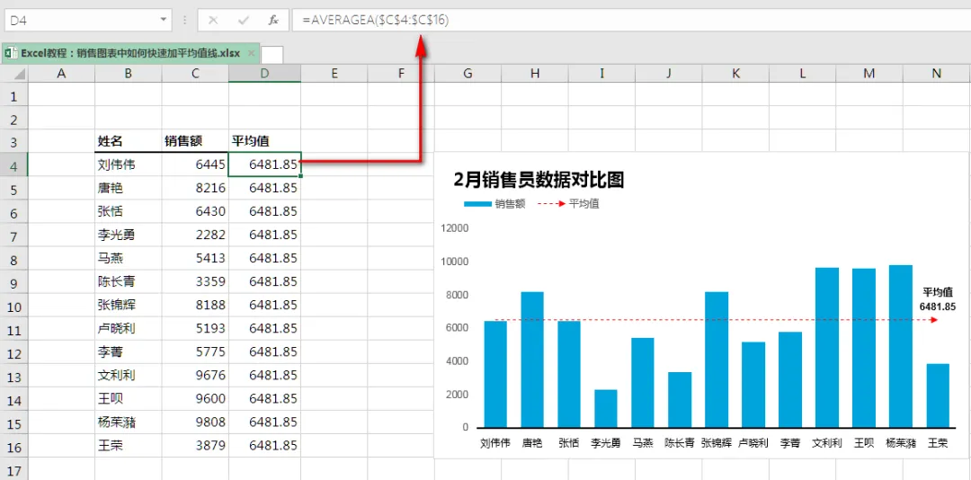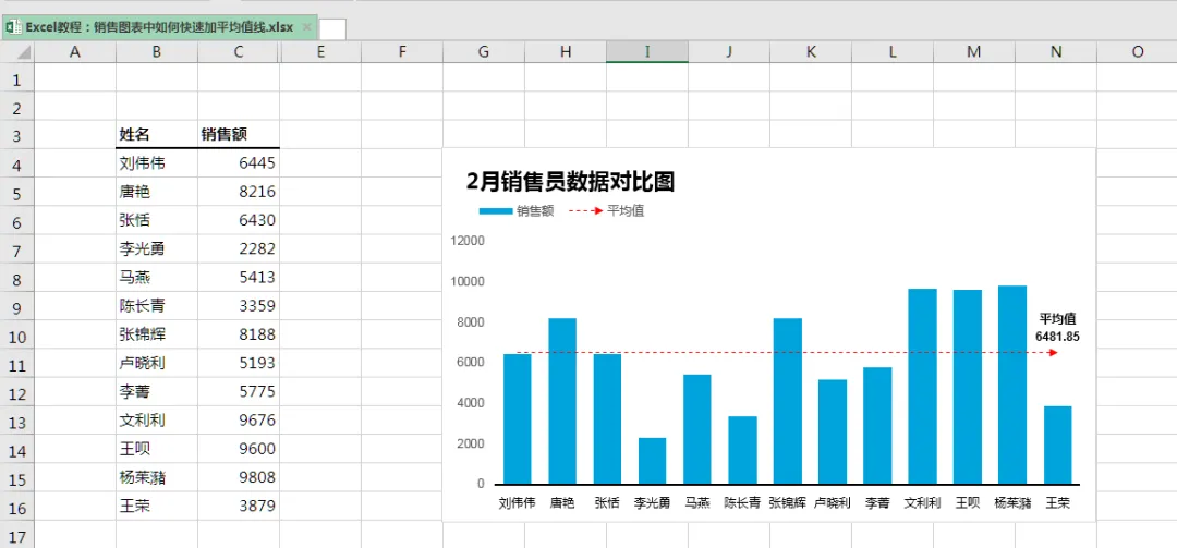 销售柱形图工作中大家都做过吧,如何快速在柱形图中加一条平均值线?