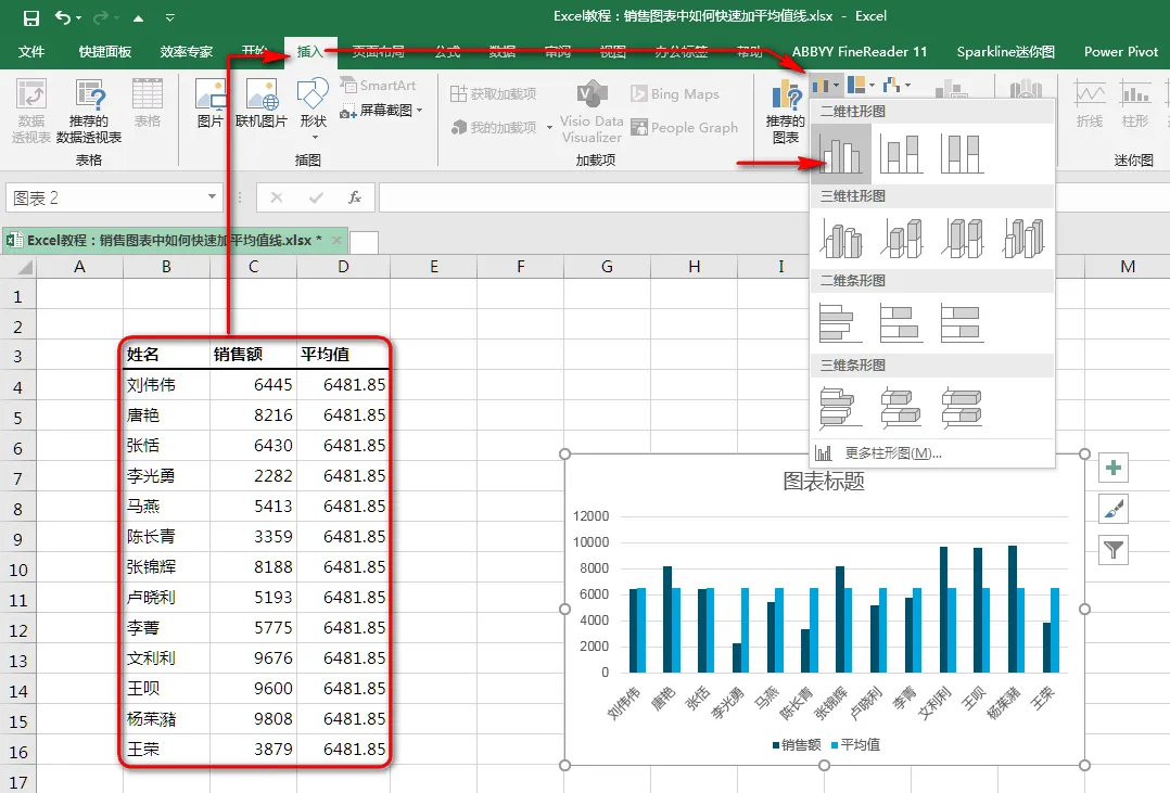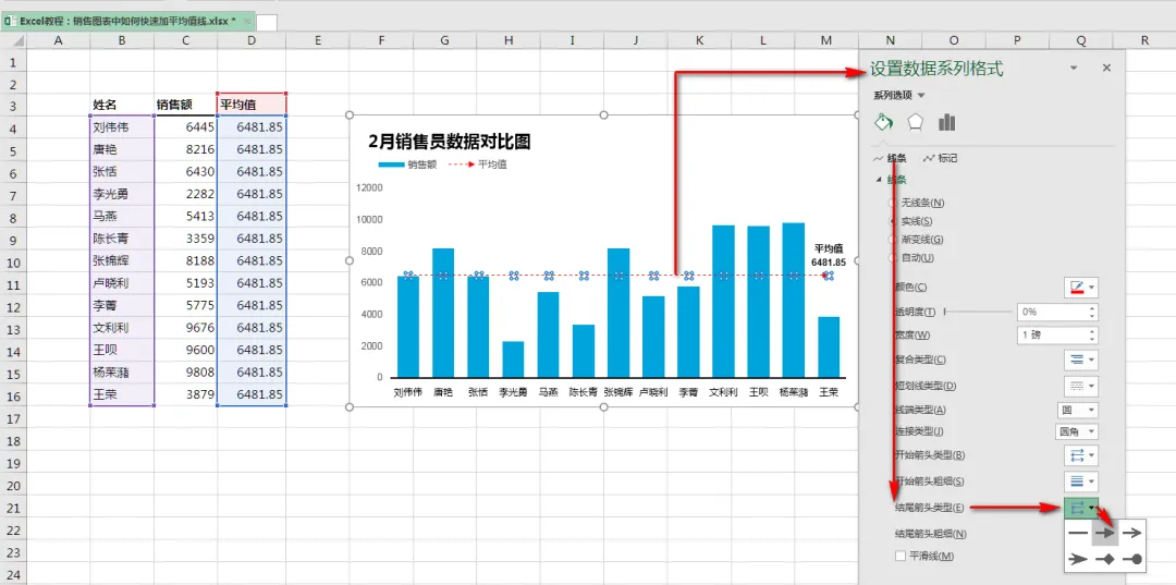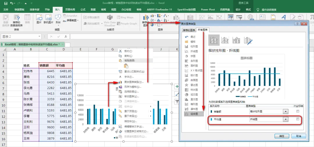 Excel教程:销售图表中如何快速加平均值线