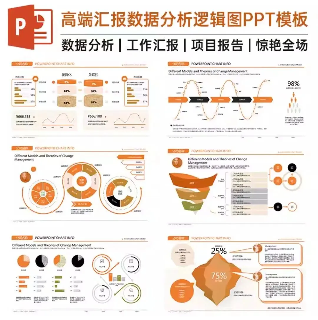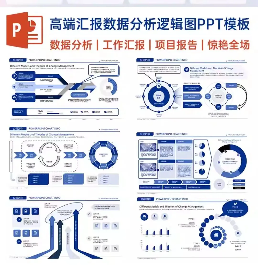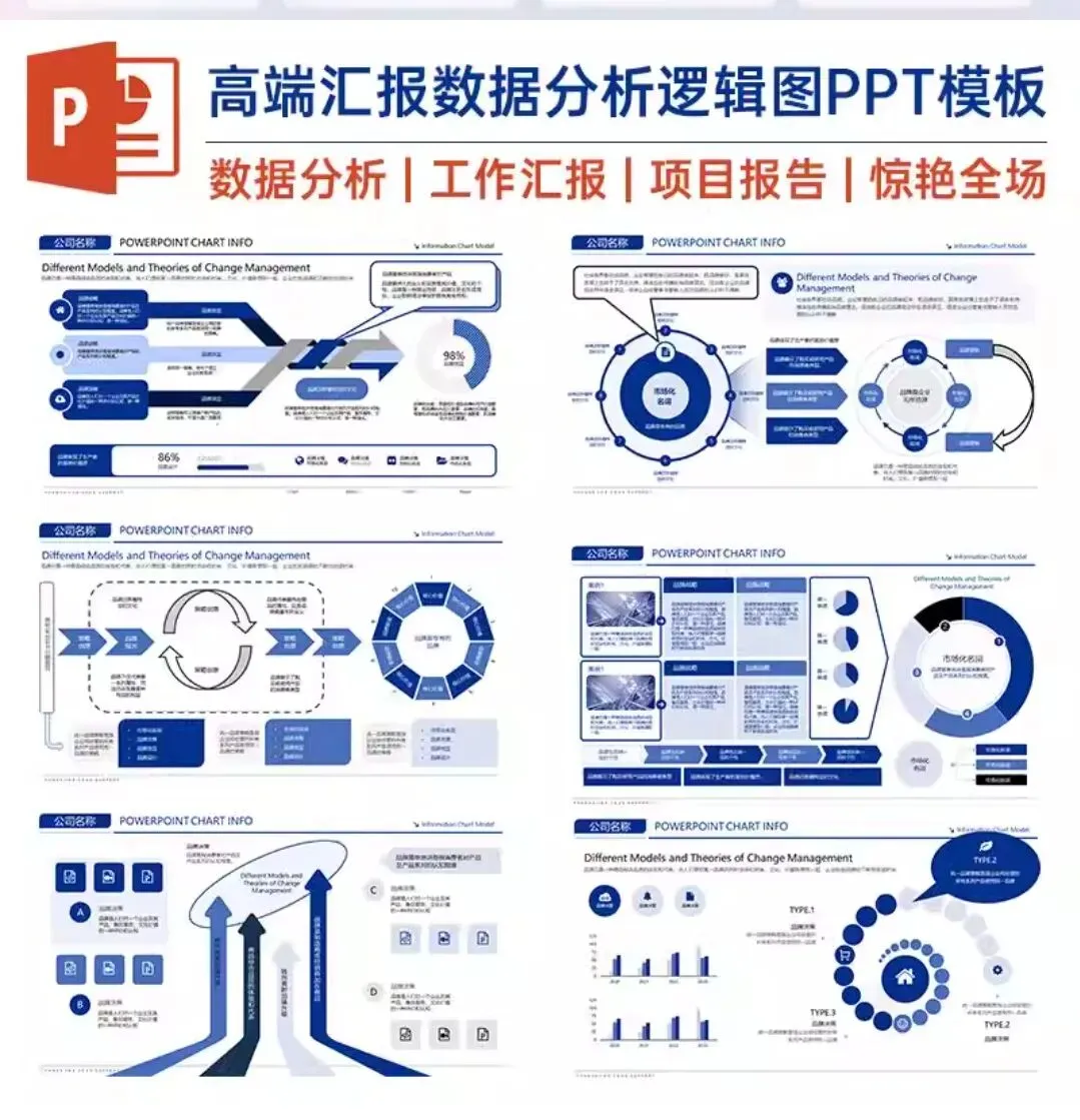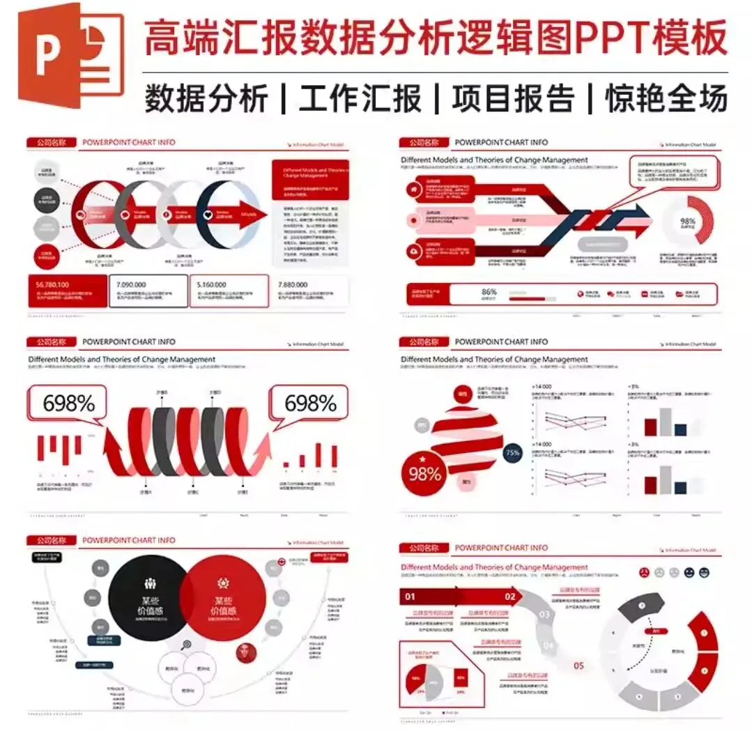 【PPT模板】214页高端数据分析逻辑图表工作汇报PPT模板