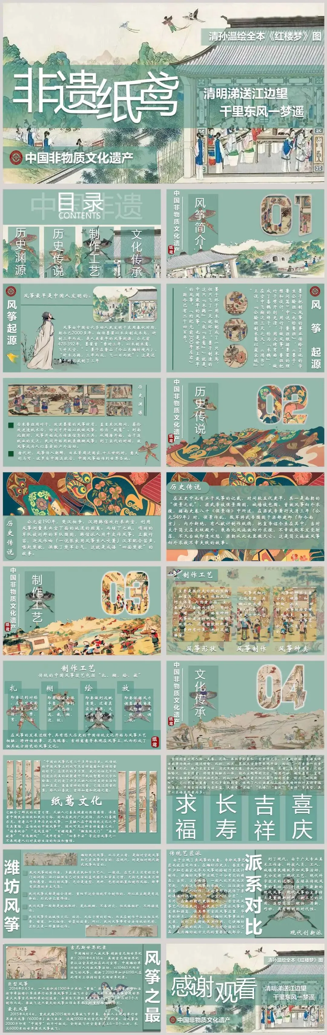 这是一套中国非物质文化遗产纸鸢宣传介绍PPT模板,共19页;