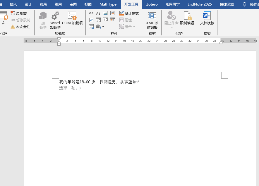 要在word里实现下拉选择指定的内容填写,可以利用开发工具中的下拉列表来实现。