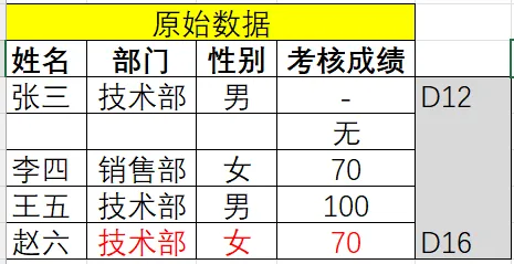 如上图:考核成绩有5行,3行数值,1行文本(无),1个符号(-).