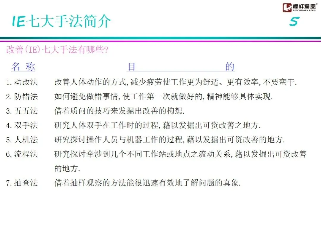 PPT下载 | 工业工程七大手法【标杆精益】