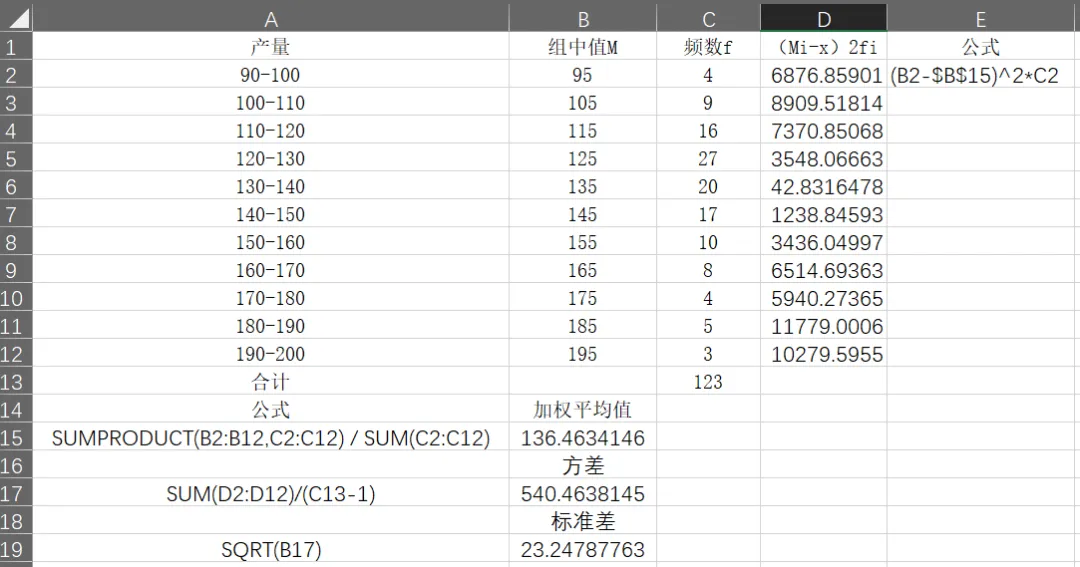 标准差与方差在计算时需要注意使用样本标准差与总体标准差的区别,从而区分公式和函数的使用。