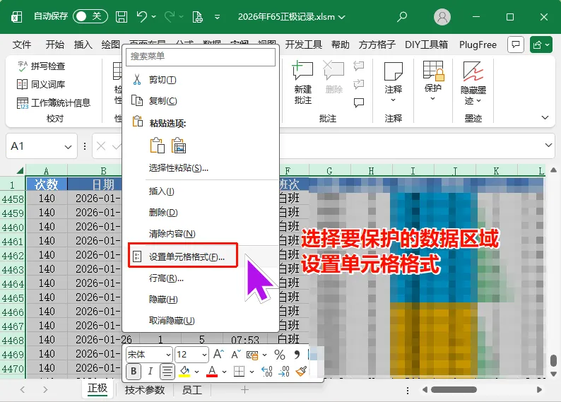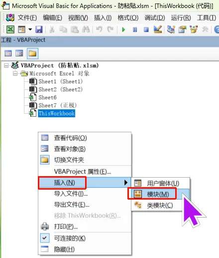 。如果你也想实现这样的效果,可以按下面的方法操作试试:2、确保勾选了“锁定”(Excel 新建的工作表默认都是勾选的)3、在任意一个工作表名上点击鼠标右键,查看代码,进入 VBE 中。4、在 ThisWorkbook 模块中添加如下代码:Private Sub Workbook_SheetSelectionChange(ByVal Sh As Object, ByVal Target As Range) ' 自动清除剪贴板 Application.CutCopyMode = FalseEnd Sub'打开工作薄时执行,取消密码保护。Private Sub Workbook_Open() Call 解锁End Sub'保存工作薄时执行,添加密码保护。Private Sub Workbook_BeforeSave(ByVal SaveAsUI As Boolean, Cancel As Boolean) Call 加锁End SubSub 解锁() ThisWorkbook.Sheets("正极").Unprotect Password:="abc123"End SubSub 加锁() ThisWorkbook.Sheets("正极").Protect Password:="abc123"End Sub