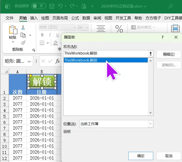 5、保存修改后会自动锁定工作表,受保护区域就无法修改数据。这一步的目的是防止 Excel 的宏功能被禁用无法自动清除剪贴板,由于表被锁定,也就阻止了粘贴数据的操作,要想填写数据必须启用宏功能。6、启用宏后只要执行了保存动作就会锁定工作表,要继续编辑就需要解锁,所以这里加一个“解锁”按钮,将其与“解锁”宏绑定。这样点击“解锁”就可以编辑了,当然粘贴数据是无效的