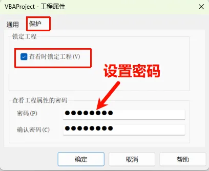 。7、为了进一步防止程序运行被破坏,还需要对 VBA 设置密码保护。8、设置工程保护密码,务必勾选“查看时锁定工程”。上面是昨天写的,发现有一点点 Bug