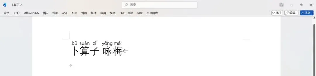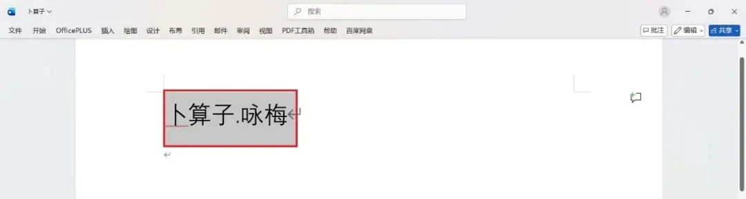 1、打开Word文档,选中需要添加拼音的文字“卜算子.咏梅”。如:图1。