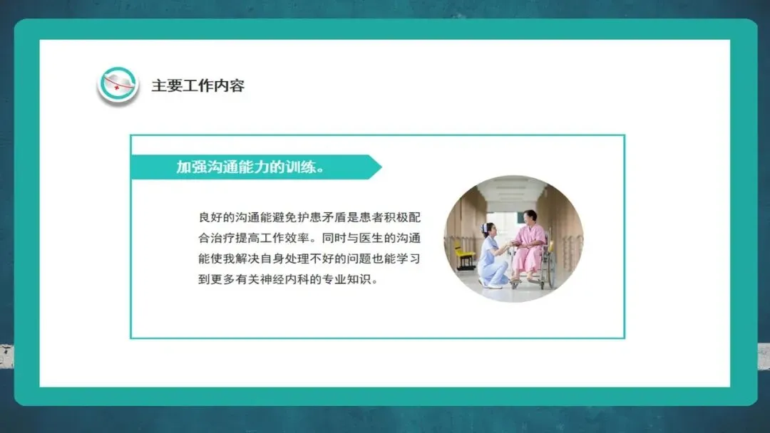 工作中,我始终将病人视为亲友,用换位思考传递温暖。通过认真书写护理文书、严格执行“三查七对”,我努力在每一个细节中体现责任。同时,我也注重与患者、医生的有效沟通,这不仅化解了许多潜在矛盾,也让我在神经内科康复护理中积累了宝贵经验。