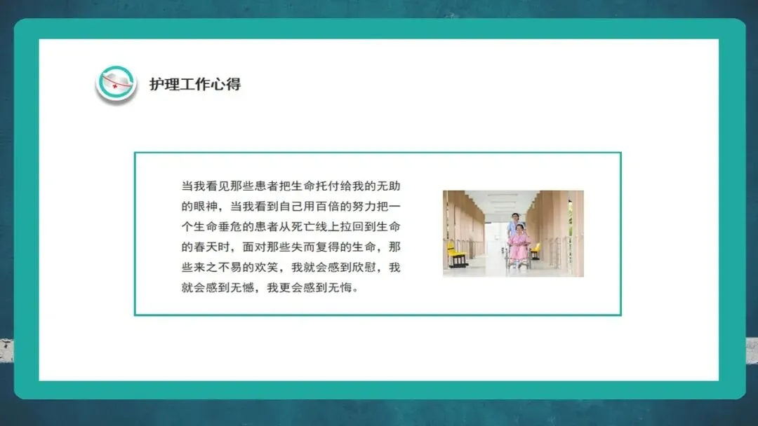 时光飞逝,转眼间,我在医院工作已近两年。在院领导、科主任和护士长的引领下,我始终秉持“以病人为中心”的信念,以严谨的态度投入护理工作。这段经历中,有泪水也有成长,有挑战更有收获。