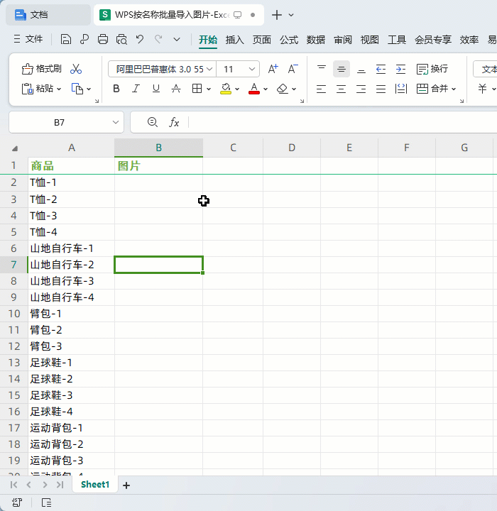 我在Excel文件中罗列着一些商品名称,在文件夹中有商品对应名称的图片,现在需要根据商品名称将对应的图片导入到B列,像这样的操作如何批量完成呢?
