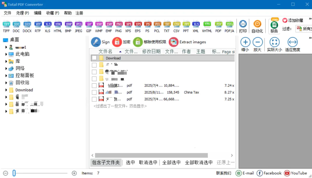 1、支持PDF转换DOC, RTF, TIFF, XLS, HTML, EPS, PS, TXT, CSV, PDF/A/所有图像