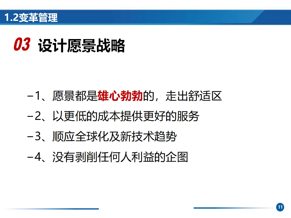 愿景是变革的灯塔,它为组织指明方向,激励人们克服困难前行。有效的愿景不是空洞的口号,而是具有强烈感召力和现实指导意义的蓝图。