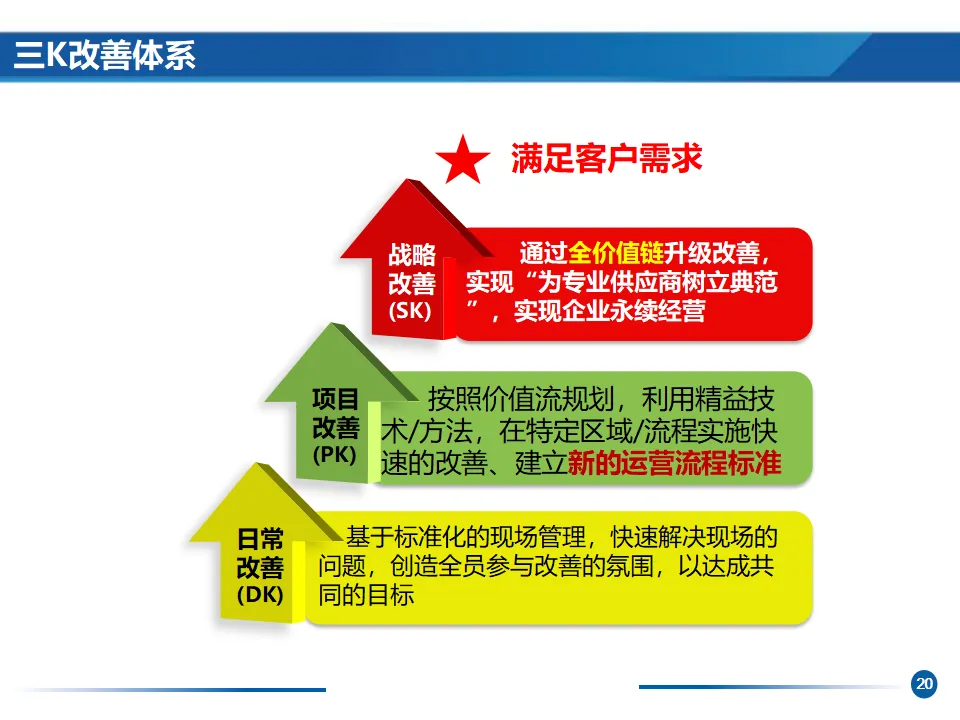 。文化是看不见摸不着的,必须附着在有形成果上。比如,将改善成果制度化,更新SOP、作业指导书;将优秀改善案例编入培训教材;将改善能手晋升到管理岗位。某企业每年评选"精益十大改善项目",将案例刻成光盘,作为新员工必学材料,这就是文化固化。