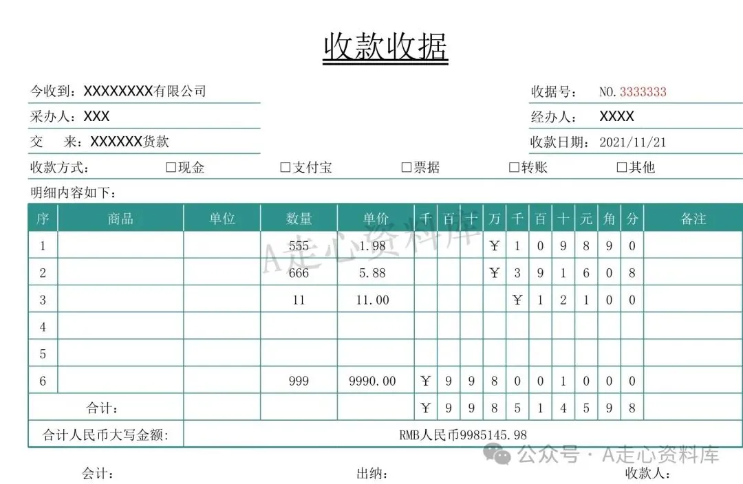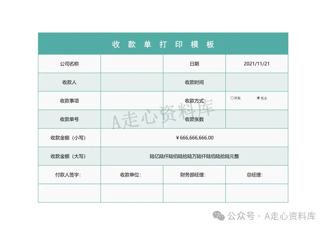回复关键词“收款收据”领取完整版!